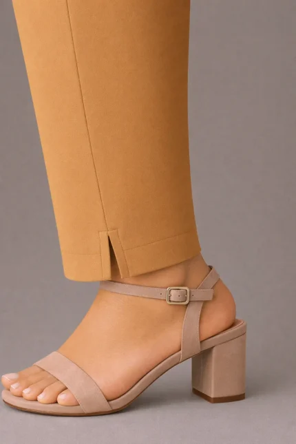 Camel brown cotton straight cut pants for women