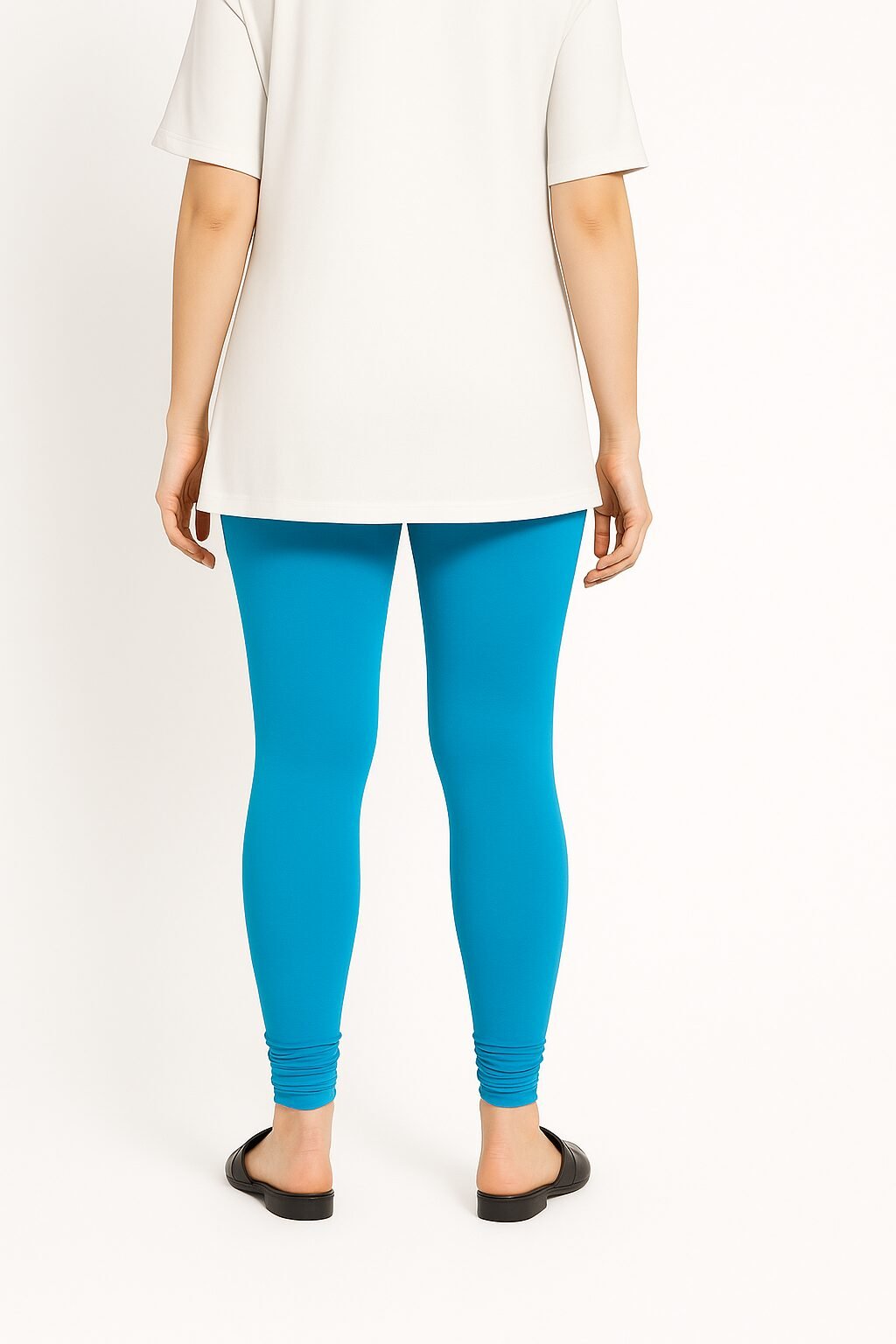 The Aqua blue colour shade pairs beautifully with whites, blacks, beige, floral tops, and ethnic tops . Designed to move with you, these leggings stay in shape even after multiple washes. Whether you’re dressing up for a casual outing or styling for traditional events, these leggings bring confidence and charm to your look.