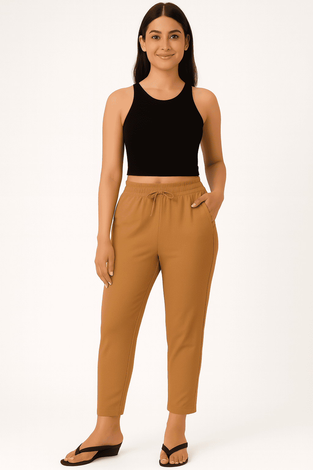 Crafted for durability, the fabric maintains its shape and color even after repeated washes. The comfortable waistband provides a secure yet gentle fit, while the wrinkle-resistant finish helps you stay neat and confident throughout the day. Camel Cotton Straight Cut Pants are a must-have for women who appreciate timeless style, breathable comfort, and practicality.