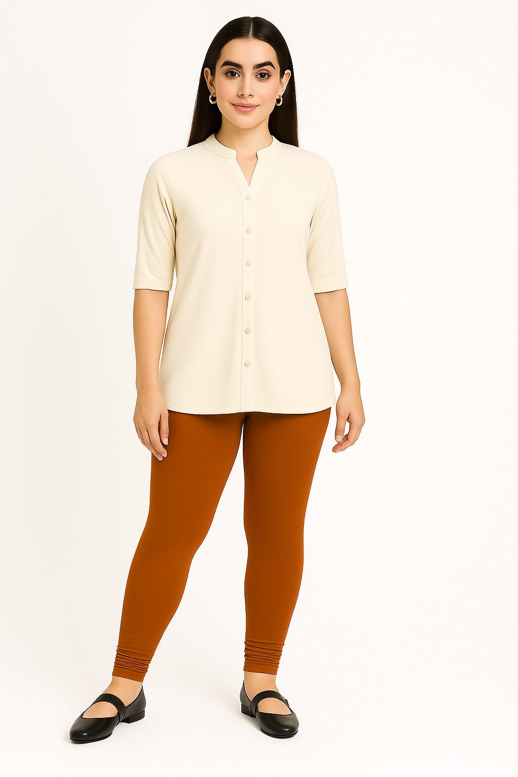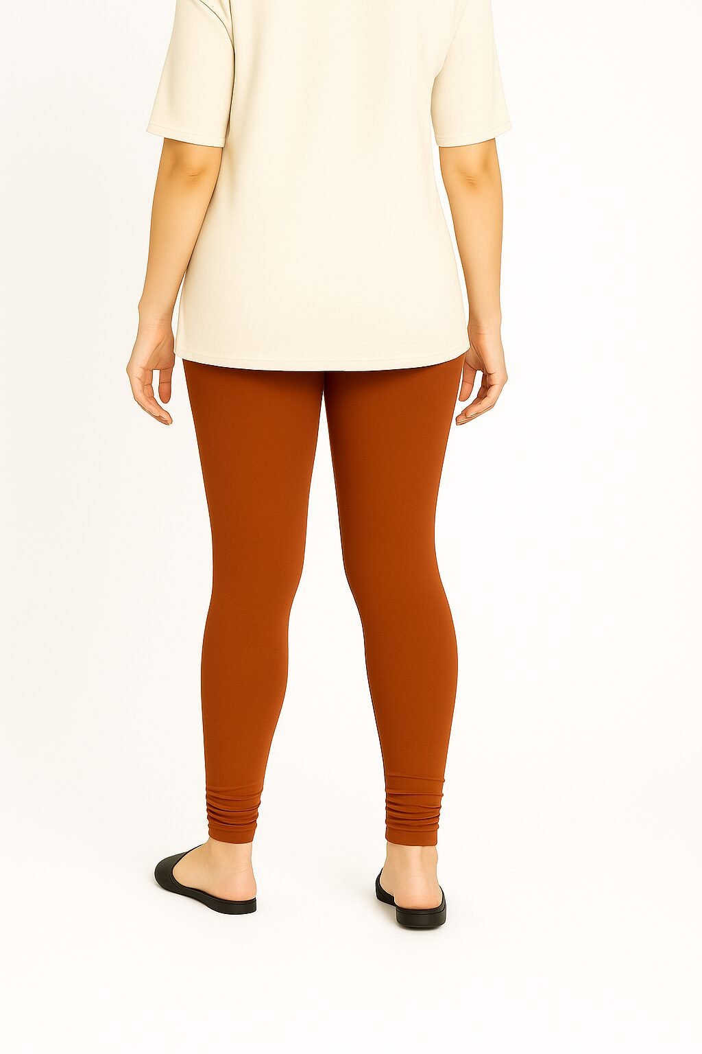 The Caramel Brown colour shade pairs beautifully with whites, blacks, beige, floral tops, and ethnic tops . Designed to move with you, these leggings stay in shape even after multiple washes. Whether you’re dressing up for a casual outing or styling for traditional events, these leggings bring confidence and charm to your look.