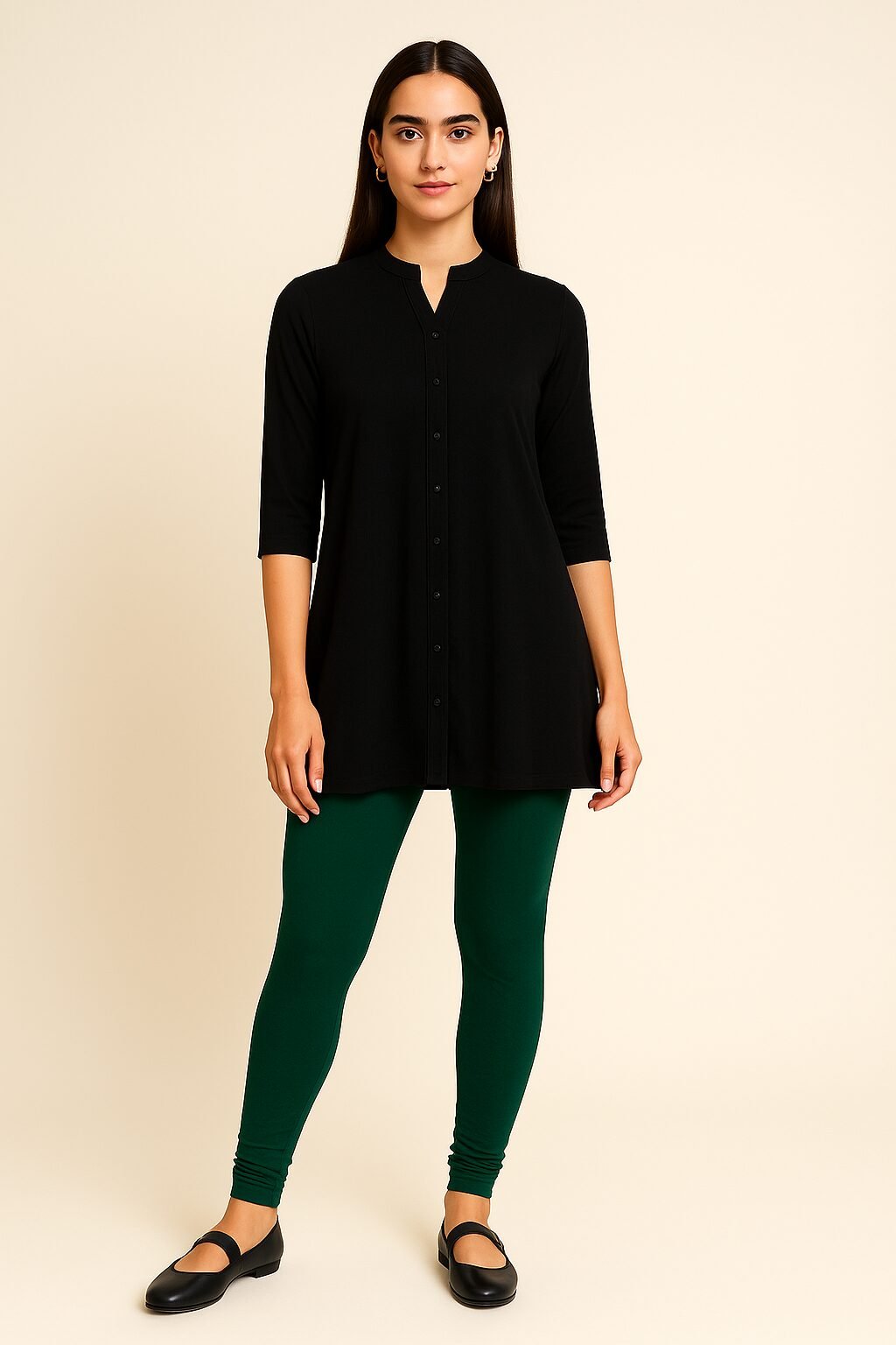 The forest green colour shade pairs beautifully with whites, blacks, beige, floral tops, and ethnic tops . Designed to move with you, these leggings stay in shape even after multiple washes. Whether you’re dressing up for a casual outing or styling for traditional events, these leggings bring confidence and charm to your look.