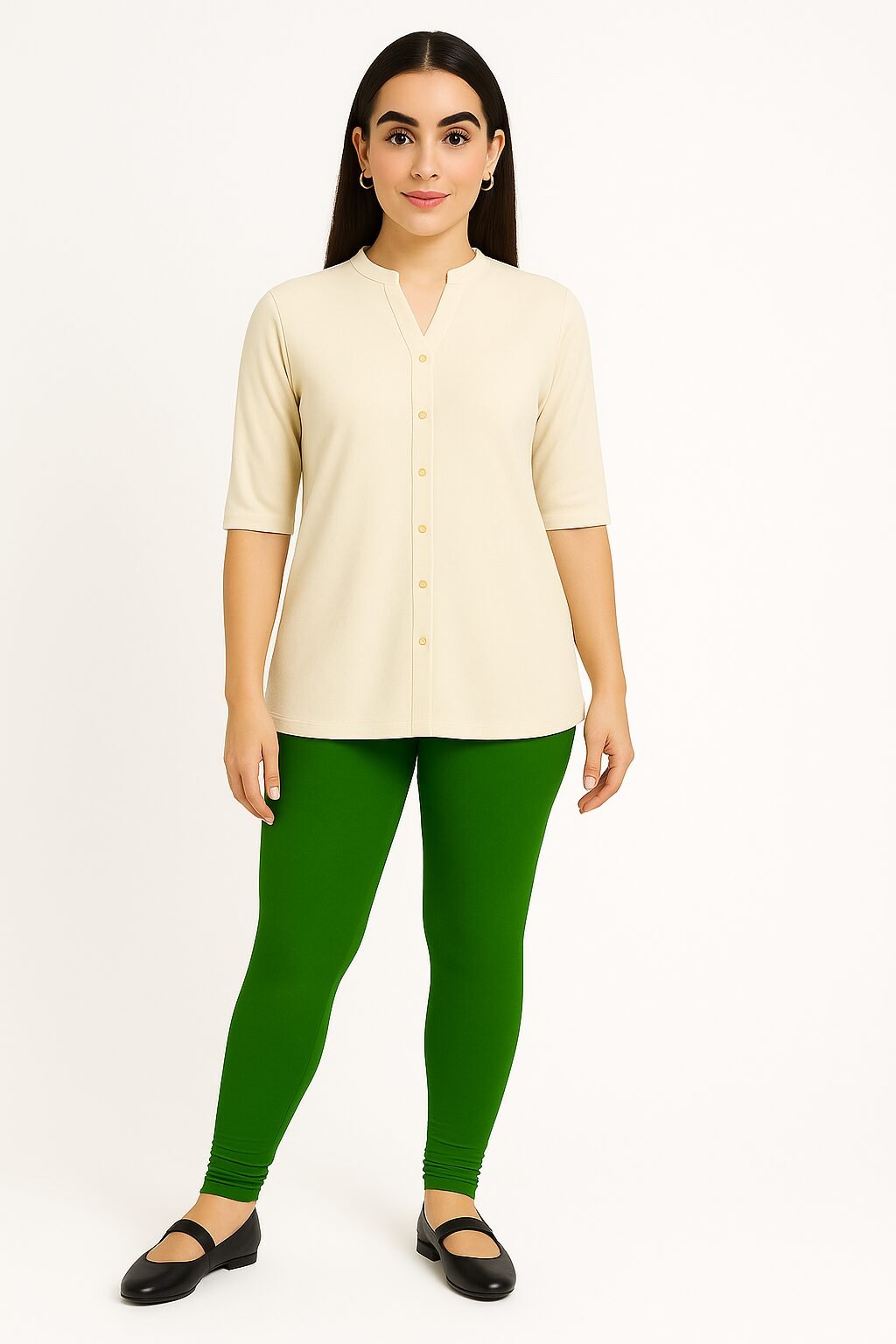 The Parrot green colour shade pairs beautifully with whites, blacks, beige, floral tops, and ethnic tops . Designed to move with you, these leggings stay in shape even after multiple washes. Whether you’re dressing up for a casual outing or styling for traditional events, these leggings bring confidence and charm to your look.