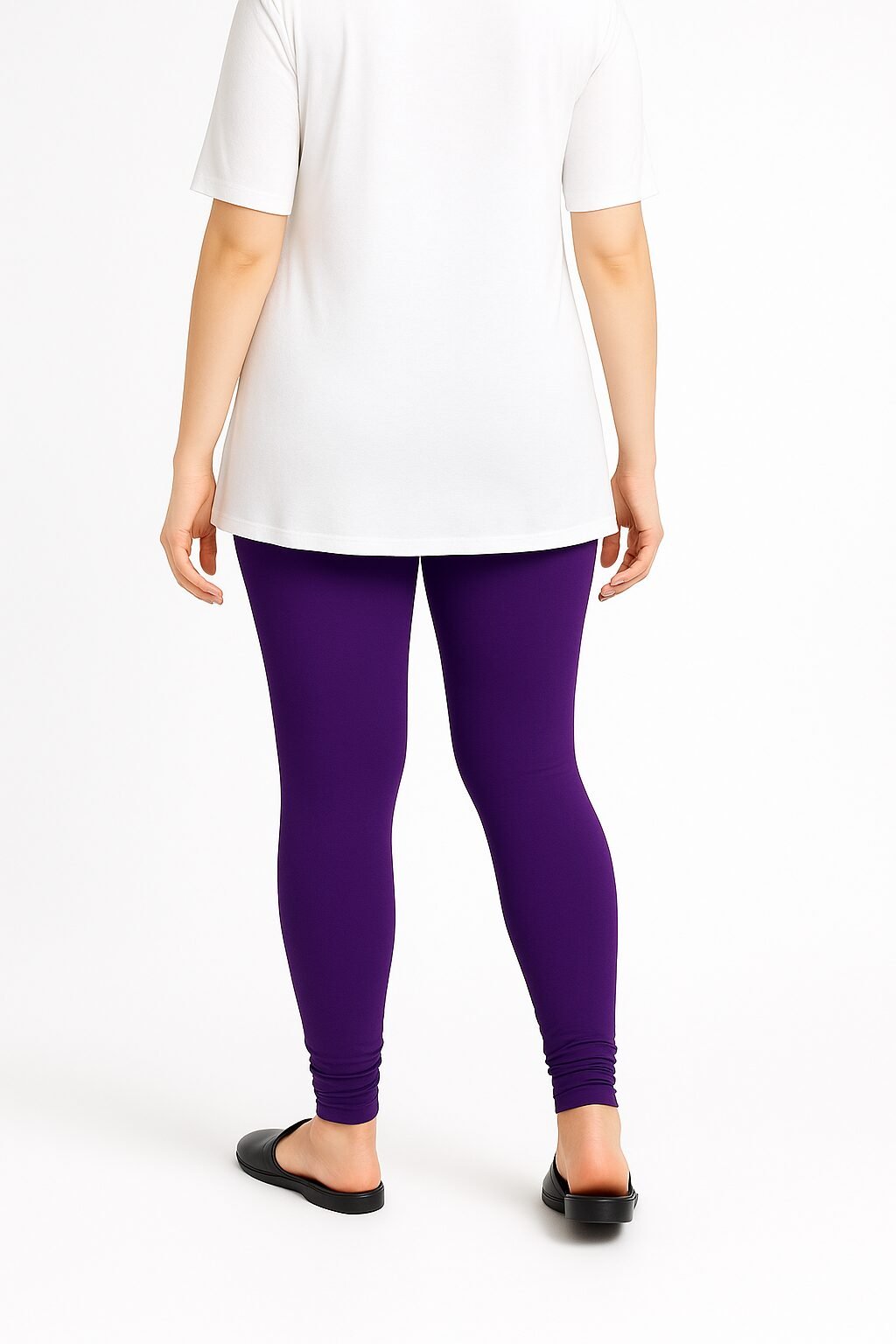 The Royal purple colour shade pairs beautifully with whites, blacks, beige, floral tops, and ethnic tops . Designed to move with you, these leggings stay in shape even after multiple washes. Whether you’re dressing up for a casual outing or styling for traditional events, these leggings bring confidence and charm to your look.
